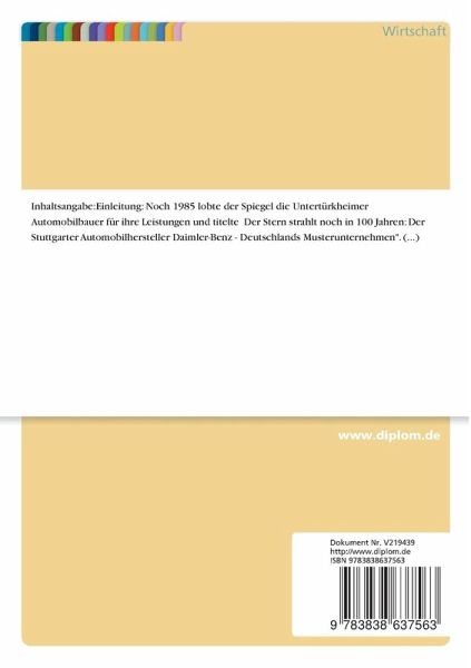 Noch 1985 lobte der Spiegel die Untertürkheimer Automobilbauer für ihre Leistungen und titelte Der Stern strahlt noch in 100 Jahren: Der Stuttgarter Automobilhersteller Daimler-Benz - Deutschlands Musterunternehmen". Die Wirtschaftswoche kommentierte den Jahresabschluß 1984 mit der Überschrift DAIMLER-BENZ: Mehr Plus als Minus" Ab Ende der achtziger Jahre bis zu Beginn des Jahres 1996 waren die Schlagzeilen weniger euphorisch: