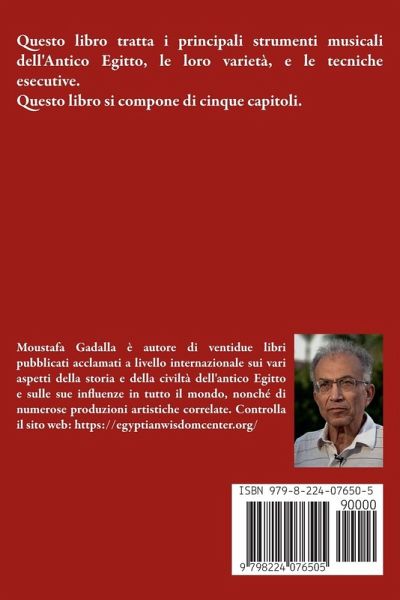 Questo libro tratta i principali strumenti musicali dell'Antico Egitto, le loro varietà, e le tecniche esecutive. Questo libro si compone di cinque capitoli: Capitolo 1: La ricchezza di strumenti evidenzia le caratteristiche generali degli strumenti egiziani e le componenti principali dell'orchestra. Capitolo 2: Strumenti a corda illustra i vari strumenti a corda dell'Antico Egitto come le lire, il tri-gonon (zither) e le arpe, oltre che le tecniche esecutive: Le tecniche esecutive dell'arpa; le capacità onnicomprensive degli antichi; gli strumenti a corda con manico, come il liuto a manico corto; le chitarre egiziane a collo lungo; e gli strumenti ad arco [kamanga, rababah]. Capitolo 3: Strumenti a fiato tratta il flauto con foro inferiore aperto; flauto traverso; il flauto di Pan; il flauto ad ancia semplice (clarinetto); il flauto doppio; il doppio clarinetto; l'oboe ad ancia doppia; l'arghul; altri strumenti (cornamusa e organo); e corni/trombe. Capitolo 4: Strumenti a percussione tratta gli strumenti membranofoni come i tamburi e i tamburelli; e gli strumenti non membranofoni (idiofoni) come le bacchette per percussioni, i batacchi, i sistri, i cimbali, le nacchere, le campane (chimes), lo xilofono e il glockenspiel e le parti del corpo umano (mani, dita, gambe, piedi, ecc.). Capitolo 5: L'esecuzione musicale esamina il significato e il ruolo delle dita e delle nocche nella produzione e direzione di esecuzioni musicali; così come i diversi metodi per tenere il tempo ritmico, compreso l'uso di sillabe.
