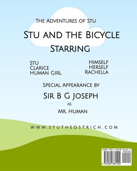 Stu isn't quite like other ostriches. He is curious and wonders about life and the why and how of things. It's no surprise then that he has to know what this contraption is that a human rides up and down the road every day. The human tells him that he seems very interested in his bicycle and wishes that Stu could tell him what he's thinking. He never expects Stu to answer, and when Stu does the man falls on the ground, stunned and amazed. "You, you, you can talk!" "Yes, obviously I can talk. This is clarice and I'm Stu. Try to stay calm." "But, Mr. Stu, you, you, you can talk! "Try to keep up.…mehr