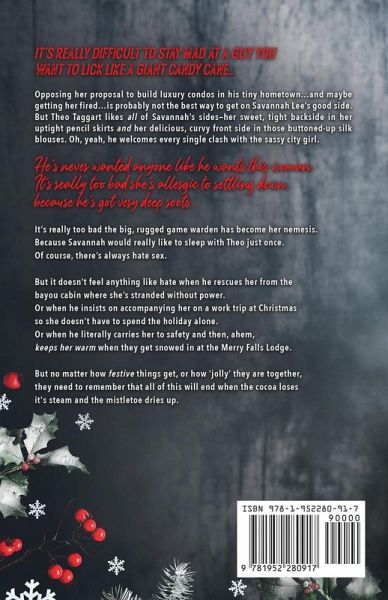 It's really difficult to stay mad at a guy you want to lick like a giant candy cane... Opposing her proposal to build luxury condos in his tiny hometown...and maybe getting her fired...is probably not the best way to get on Savannah Lee's good side. But Theo Taggart likes all of Savannah's sides-her sweet, tight backside in her uptight pencil skirts and her delicious, curvy front side in those buttoned-up silk blouses. Oh, yeah, he welcomes every single clash with the sassy city girl. He's never wanted anyone like he wants this woman. It's really too bad she's allergic to settling down, because he's got very deep roots. It's really too bad the big, rugged game warden has become her nemesis. Because Savannah would really like to sleep with Theo just once. Of course, there's always hate sex. But it doesn't feel anything like hate when he rescues her from the bayou cabin where she's stranded without power. Or when he insists on accompanying her on a work trip at Christmas so she doesn't have to spend the holiday alone. Or when he literally carries her to safety and then, ahem, keeps her warm when they get snowed in at the Merry Falls Lodge. But no matter how festive things get, or how 'jolly' they are together, they need to remember that all of this will end when the cocoa loses it's steam and the mistletoe dries up.