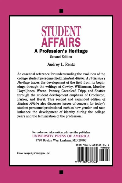 An essential reference for understanding the evolution of the college student personnel field, Student Affairs: A Profession's Heritage traces the development of the field from its beginnings through the writings of Cowley, Williamson, Mueller, Lloyd-Jones, Wrenn, Penney, Greenleaf, Tripp, and Shaffer through the student development emphasis of Crookston, Parker and Hurst. This second and expanded edition of Student Affairs also discusses the development of identity during the college years and the feminization of the profession. Co-published with American College Personnel Association.
