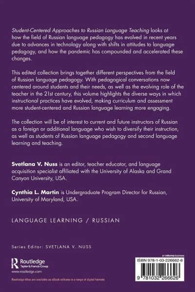 Student-Centered Approaches to Russian Language Teaching looks at how the field of Russian language pedagogy has evolved in recent years due to advances in technology along with shifts in attitudes to language pedagogy, and how the pandemic has compounded and accelerated these changes.