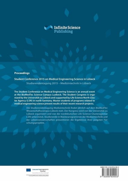 Table of Contents ¿ 1. Biomedical Optics: E.g. Flow velocity measurements using Doppler optical coherence tomography; Characterization of a micro machined deformable membrane mirror using optical coherence tomography; Laser Ray Tracing Setup for Measuring the Refractive Index Changes in Bovine Lenses; Optically Monitored Selective Laser Trabeculoplasty; 2. Biochemical Physics: E.g. LED-based Illumination Set-up for In Vitro Photodynamic Therapy; Construction and implementation of a simple stopped-flow apparatus for the investigation of rapid kinetics using confocal fluorescence microscopy; Fluorescence Properties and Cytotoxicity of Nanoparticle-based Ratiometric Fluorescent Thermometer on RPE Cells; 3. Biomedical Engineering: Dispension of a bead suspension into small vessels; Simulation of torque acting on the joint of an exoskeleton for stroke rehabilitation; Determination of Measurement Characteristics of a Sensor for Blood Leakage in Hemodialysis; Checking the usability of a valve system to control a pressure controlled valve from a breathing machine; 4. Safety and Quality: Investigation of the APICA ASCTM access and closure device for the delivery of mitral valve therapies; Technical Reequipment and Restructuring of Endoscopic Department at Demmin Hospital; Developing a procedure to test the compatibility of flexible endoscopes with an Endo-Thermo-Disinfector (ETD); 5. Medical Imaging: Novel Method to Measure Migration of Percutaneous Nerve Evaluation Leads; The measurement of the peak kilovoltage across microfocus X-ray tubes by using K-shell radiation and K-shell absorption; Analyzing the Impact of Different Path Termination Conditions in a Probabilistic Fiber Tracking Algorithm; 6. Signal Processing: Single-trial variability of non-invasively recorded high-frequency somatosensory evoked potentials; Evaluation of a Skin-to-Electrode Impedance Measuring System; Quantitative evaluation of online signal processing for fMRI-based neurofeedback; Receive Chain Noise Matching For Magnetic Particle Imaging; 7. Image Processing: Experimental Evaluation of Different Weighting Schemes in Magnetic Particle Imaging Reconstruction; Comparison and Performance Evaluation of Indoor Localization Algorithms based on an Error Mode for an Optical System; Fully Automated Camera Calibration for X-ray Inspection and Computed Tomography Systems;