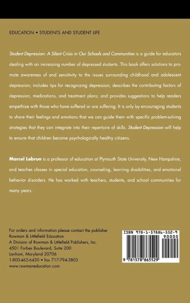 Student Depression is a guide for educators dealing with an increasing amount of depressed students. This book offers solutions to promote awareness of and sensitivity to the issues surrounding childhood and adolescent depression; includes tips for recognizing depression; describes the contributing factors of depression, medications and treatment plans; and provides suggestions to help readers empathize with those who have suffered or are suffering.