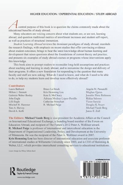 A central purpose of this book is to question the claims commonly made about the educational benefits of study abroad. Traditional metrics of enrollment increases and student self-report, and practices of structural immersion, are being questioned as educators voice growing uncertainty about what students are or are not in fact learning abroad. This book looks into whether these criticisms are justified-and what can be done if they are.The contributors to this book offer a counter-narrative to common views that learning takes place simply through students studying elsewhere, or through their enrolling in programs that take steps structurally to "immerse" them in the experience abroad.Student Learning Abroad reviews the dominant paradigms of study abroad; marshals rigorous research findings, with emphasis on recent studies that offer convincing evidence about what undergraduates are or are not learning; brings to bear the latest knowledge about human learning and development that raises questions about the very foundations of current theory and practice; and presents six examples of study abroad courses or programs whose interventions apply this knowledge. This book provokes readers to reconsider long-held assumptions, beliefs and practices about teaching and learning in study abroad and to reexamine the design and delivery of their programs. In doing so, it provides a new foundation for responding to the question that may faculty and staff are now asking: What do I need to know, and what do I need to be able to do, to help my students learn and develop more effectively abroad? Contributors:Laura BathurstMilton BennettGabriele Weber BosleyJohn EngleLilli Engle Tara HarveyMitchell HammerDavid KolbBruce La Brack Kris Hemming LouKate McClearyCatherine MenyhartR. Michael PaigeAngela PassarelliAdriana Medina-López PortilloMeghan QuinnJennifer Meta RobinsonRiikka SalonenVictor SavickiDouglas StuartMichael Vande BergJames ZullWhile the authors who have contributed to Student Learning Abroad are all known for their work in advancing the field of education abroad, a number have recently been honored by leading international education associations. Bruce La Brack received NAFSA's 2012 Teaching, Learning and Scholarship Award for Innovative Research and Scholarship. Michael Paige (2007) and Michael Vande Berg (2012) are recipients of the Forum on Education Abroad's Peter A. Wollitzer Award.