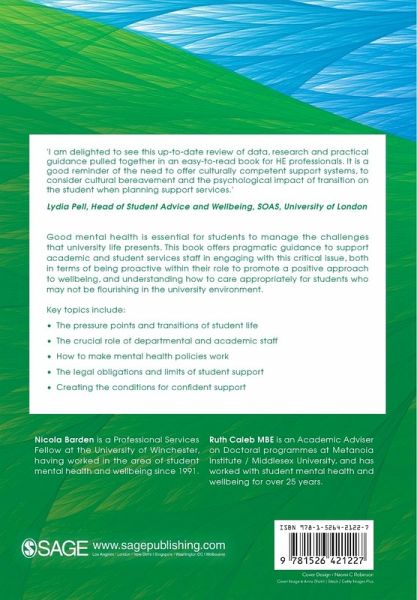 Good mental health is essential for students to manage the challenges that university life presents. This book offers pragmatic guidance to support academic and student services staff in engaging with this critical issue, both in terms of being proactive within their role to promote a positive approach to wellbeing, and understanding how to care appropriately for students who may not be flourishing in the university environment.