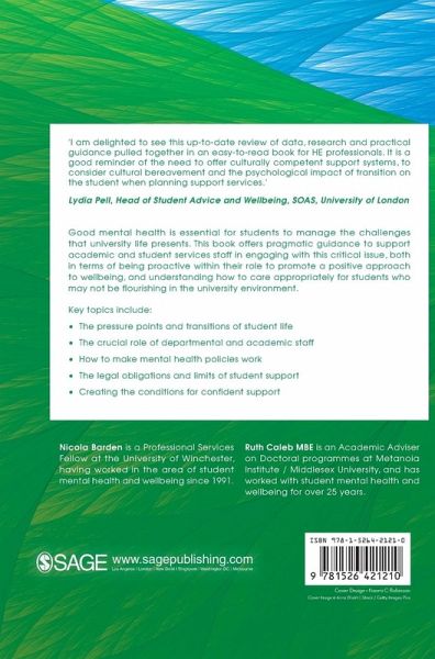 Good mental health is essential for students to manage the challenges that university life presents. This book offers pragmatic guidance to support academic and student services staff in engaging with this critical issue, both in terms of being proactive within their role to promote a positive approach to wellbeing, and understanding how to care appropriately for students who may not be flourishing in the university environment.