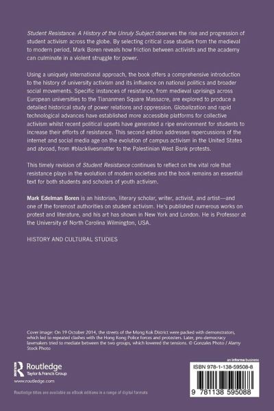 Student Resistance: A History of the Unruly Subject observes the rise and progression of student activism across the globe. By selecting critical case studies from the medieval to modern period, Mark Boren reveals how friction between activists and the academy can culminate in a violent struggle for power. Using a uniquely international approach, the book offers a comprehensive introduction to the history of university activism and its influence on national politics and broader social movements. Specific instances of resistance, from medieval uprisings across European universities to the Tiananmen Square Massacre, are explored to produce a detailed historical study of power relations and oppression. Globalization and rapid technological advances have established more accessible platforms for collective activism whilst recent political upsets have generated a ripe environment for students to increase their efforts of resistance. This second edition addresses repercussions of the internet and social media age on the evolution of campus activism in the United States and abroad, from #blacklivesmatter to the Palestinian West Bank protests. This timely revision of Student Resistance continues to reflect on the vital role that resistance plays in the evolution of modern societies and the book remains an essential text for both students and scholars of youth activism.