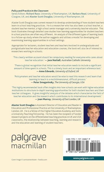"This book is a welcome and timely addition to a burgeoning literature on teacher education. Not only refreshing but bold, Douglas comments how so many texts err on the descriptive side, rather than as this book does so well, analyse the thinking behind the actions of student teachers, school staff and university tutors in the realities of school teaching practice ... In a time of immense change in education, Douglas contributes a refreshing and insightful book that causes us to reflect deeply on the nature of learning and re-examine the opportunities in schools that promote it with student teachers. I can recommend thisbook very highly and assuredly it will be top of the reading list of teacher education and education studies students in my University." - Jonathan Doherty, Journal of Vocational Education & Training