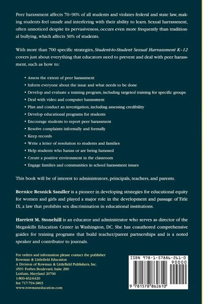 Bernice Resnick Sandler, senior scholar, Women's Research and Education Institute, Washington DC, is a pioneer in developing strategies for educational equity for women and girls. She has a long list of "firsts," including the first reports on campus sexual harassment, gang rape, student-to-student sexual harassment, and the chilly classroom climate; and played a major role in the development and passage of Title IX, the law that prohibits sex discrimination in educational institutions. She has given over 2500 presentations and has written extensively about gender equity. Harriett M. Stonehill is an educator and administrator who serves as director of the Megaskills Education Center in Washington, DC. She has trained Megaskills Leaders in 48 states and internationally, involving schools, community organizations, corporations and educators. She has coauthored comprehensive training guides with Dorothy Rich for training programs that build teacher/parent partnerships and is a noted speaker and contributor to journals. She is also an adjunct faculty member at the University of the District of Columbia.