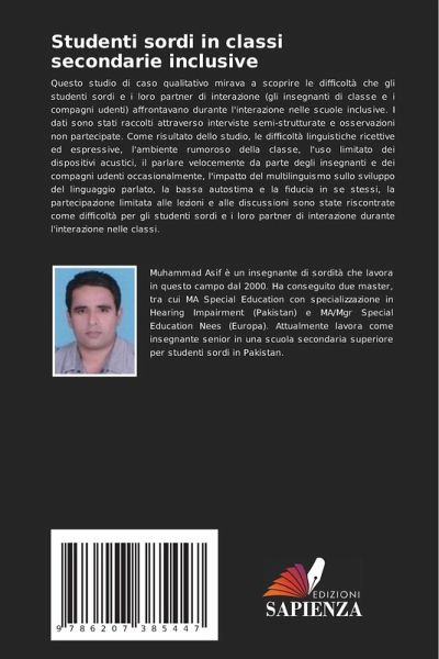 Questo studio di caso qualitativo mirava a scoprire le difficoltà che gli studenti sordi e i loro partner di interazione (gli insegnanti di classe e i compagni udenti) affrontavano durante l'interazione nelle scuole inclusive. I dati sono stati raccolti attraverso interviste semi-strutturate e osservazioni non partecipate. Come risultato dello studio, le difficoltà linguistiche ricettive ed espressive, l'ambiente rumoroso della classe, l'uso limitato dei dispositivi acustici, il parlare velocemente da parte degli insegnanti e dei compagni udenti occasionalmente, l'impatto del multilinguismo sullo sviluppo del linguaggio parlato, la bassa autostima e la fiducia in se stessi, la partecipazione limitata alle lezioni e alle discussioni sono state riscontrate come difficoltà per gli studenti sordi e i loro partner di interazione durante l'interazione nelle classi.