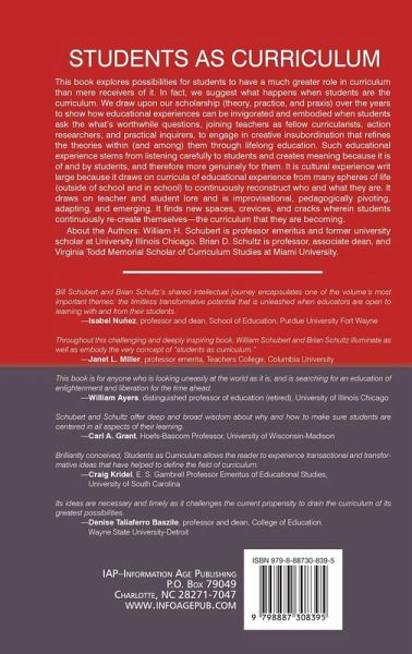 William H. Schubert in Professor Emeritus and former University Scholar from the University of Illinois Chicago. He is recipient of the Lifetime Achievement Award in Curriculum Studies from American Educational Research Association, a Fellow of the International Academy of Education, former president of the John Dewey Society, and The Society for the Study of Curriculum History, and recently the Society of Professors of Education honored him by establishing the William H. Schubert Award for Curricular Speculation. His 20-plus books, over 200 articles and chapters, and related documents are available in the William H. Schubert Curriculum Studies Collection in the Zach S. Henderson Library of Georgia Southern University. Brian D. Schultz is Professor and Virginia Todd Memorial Scholar of Curriculum Studies in the Department of Teaching, Curriculum & Educational Inquiry and Associate Dean in the College of Education, Health & Society at Miami University. Prior to joining Miami's faculty, Brian was Bernard J. Brommel Distinguished Research Professor and Chair of the Department of Educational Inquiry & Curriculum Studies at Northeastern Illinois University. Brian has served the field as president of Society of Professors of Education, factotum and treasurer of Professors of Curriculum, and in leadership roles with the American Educational Research Association. He is the author of Spectacular Things Happen Along the Way: Lessons from an Urban Classroom, and Teaching in the Cracks: Openings and Opportunities for Student-Centered, Action-Focused Curriculum.