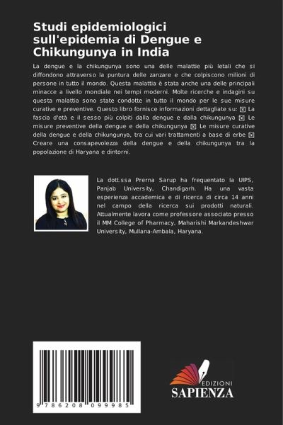 La dengue e la chikungunya sono una delle malattie più letali che si diffondono attraverso la puntura delle zanzare e che colpiscono milioni di persone in tutto il mondo. Questa malattia è stata anche una delle principali minacce a livello mondiale nei tempi moderni. Molte ricerche e indagini su questa malattia sono state condotte in tutto il mondo per le sue misure curative e preventive. Questo libro fornisce informazioni dettagliate su: ¿ La fascia d'età e il sesso più colpiti dalla dengue e dalla chikungunya ¿ Le misure preventive della dengue e della chikungunya ¿ Le misure curative della dengue e della chikungunya, tra cui vari trattamenti a base di erbe ¿ Creare una consapevolezza della dengue e della chikungunya tra la popolazione di Haryana e dintorni.
