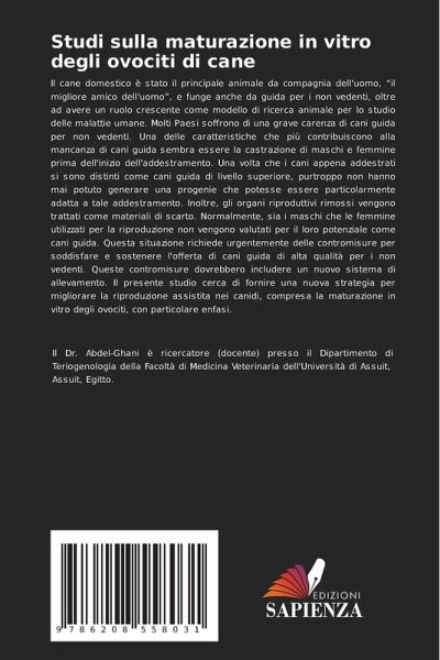 Il cane domestico è stato il principale animale da compagnia dell'uomo, "il migliore amico dell'uomo", e funge anche da guida per i non vedenti, oltre ad avere un ruolo crescente come modello di ricerca animale per lo studio delle malattie umane. Molti Paesi soffrono di una grave carenza di cani guida per non vedenti. Una delle caratteristiche che più contribuiscono alla mancanza di cani guida sembra essere la castrazione di maschi e femmine prima dell'inizio dell'addestramento. Una volta che i cani appena addestrati si sono distinti come cani guida di livello superiore, purtroppo non hanno mai potuto generare una progenie che potesse essere particolarmente adatta a tale addestramento. Inoltre, gli organi riproduttivi rimossi vengono trattati come materiali di scarto. Normalmente, sia i maschi che le femmine utilizzati per la riproduzione non vengono valutati per il loro potenziale come cani guida. Questa situazione richiede urgentemente delle contromisure per soddisfare e sostenere l'offerta di cani guida di alta qualità per i non vedenti. Queste contromisure dovrebbero includere un nuovo sistema di allevamento. Il presente studio cerca di fornire una nuova strategia per migliorare la riproduzione assistita nei canidi, compresa la maturazione in vitro degli ovociti, con particolare enfasi.