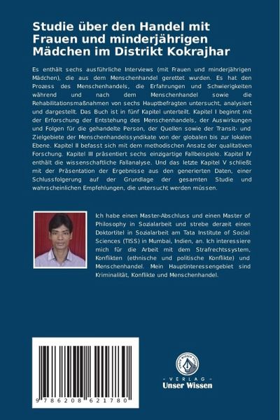Es enthält sechs ausführliche Interviews (mit Frauen und minderjährigen Mädchen), die aus dem Menschenhandel gerettet wurden. Es hat den Prozess des Menschenhandels, die Erfahrungen und Schwierigkeiten während und nach dem Menschenhandel sowie die Rehabilitationsmaßnahmen von sechs Hauptbefragten untersucht, analysiert und dargestellt. Das Buch ist in fünf Kapitel unterteilt. Kapitel I beginnt mit der Erforschung der Entstehung des Menschenhandels, der Auswirkungen und Folgen für die gehandelte Person, der Quellen sowie der Transit- und Zielgebiete der Menschenhandelssyndikate von der globalen bis zur lokalen Ebene. Kapitel II befasst sich mit dem methodischen Ansatz der qualitativen Forschung. Kapitel III präsentiert sechs einzigartige Fallbeispiele. Kapitel IV enthält die wissenschaftliche Fallanalyse. Und das letzte Kapitel V schließt mit der Präsentation der Ergebnisse aus den generierten Daten, einer Schlussfolgerung auf der Grundlage der gesamten Studie und wahrscheinlichenEmpfehlungen, die untersucht werden müssen.