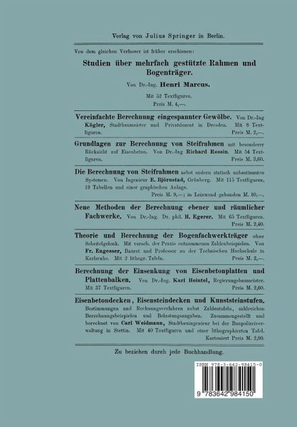 I. Abschnitt. Die unversteifte Rippenkuppel.- 1. Die Spannungsverteilung bei räumlicher Stützung.- 2. Die Spannungs Verteilung bei ebener Stützung.- II. Abschnitt. Die Rippenkuppel mit starren Versteifungsböden.- 1. Verteilung der Ringwiderstände.- 2. Bildungsgesetze der statisch unbestimmten Gruppen.- 3. Ermittlung der Formänderungsbedingungen bei ebener Stützung.- 4. Ermittlung der Formänderungsbedingungen bei räumlicher Stützung.- 5. Bemerkenswerter Sonderfall.- III. Abschnitt. Die Rippenkuppel mit elastischen Zwischenringen.- 1. Untersuchung kettenartiger Zwischenringe.- 2. Untersuchung der aus freien Gliedern zusammengesetzten Zwischenringe.- IV. Abschnitt. Der Schlußring.- 1. Allgemeine Untersuchung eines geschlossenen Ringes.- 2. Ermittlung der Belastung und der Beanspruchung des Scheitelringes.- 3. Die Formänderung des Schlußringes und ihr Einfluß auf die Spannungsverteilung im Fachwerk.