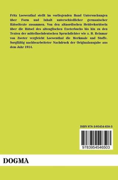 Fritz Loewenthal stellt im vorliegenden Band Untersuchungen über Form und Inhalt unterschiedlicher germanischer Rätseltexte zusammen. Von den altnordischen Heidreksrätseln über die Rätsel des altenglischen Exeterbuchs bis hin zu den Texten der mittelhochdeutschen Spruchdichter wie z. B. Reinmar von Zweter vergleicht Loewenthal die Merkmale und Stoffe. Sorgfältig nachbearbeiteter Nachdruck der Originalausgabe aus dem Jahr 1914.