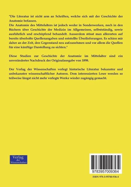 Diese Studien zur Geschichte der Anatomie im Mittelalter sind ein unveränderter Nachdruck der Originalausgabe von 1898.