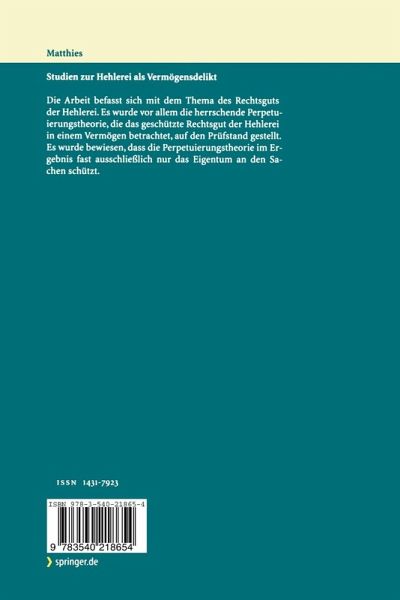 A. Einführung.- B. Das Verhältnis des Strafrechts zum Zivilrecht.- I. Allgemein.- II. Das Subsidiaritätsprinzip des Strafrechts.- III. Einheit der Rechtsordnung.- IV. Kongruenz zwischen dem Subsidiaritätsprinzip und dem Grundsatz der Akzessorietät des Strafrechts vom Zivilrecht.- C. Das Rechtsgut der Hehlerei nach der herrschenden Perpetuierungstheorie.- I. Rechtsgutsbegriff.- II. Das Rechtsgut der Hehlerei und die historische Entwicklung des Tatbestandes der Hehlerei.- III. Rechtsgut der Hehlerei und das Erfordernis einer rechtswidrigen Besitz-/Vermögenslage durch die h.M..- D. Die zivilrechtliche Untersuchung der rechtswidrigen Besitz-/Vermögenslage.- I. Vorbemerkungen.- II. Rechtswidrige Besitzlage im Verhältnis zum Tatbestand der Hehlerei.- III. Zivilrechtliche Definition der rechtswidrigen Besitzlage.- IV. Die rechtswidrige Vermögenslage im Zivilrecht.- V. Einschub: Definition der rechtswidrigen Besitz-/Vermögenslage durch die herrschende Perpetuierungstheorie 29.- VI. Vortat der Hehlerei.- E. Die Untersuchung der rechtswidrigen Besitz-/Vermögenslage beim Betrug a1s Vortat der Hehlerei.- I. Allgemeines.- II. Lösung des Beispielsfalls durch die h.M. im Strafrecht - Perpetuierungstheorie.- III. Zivilrechtliche Untersuchung der rechtswidrigen Besitz-/Vermögenslage.- IV. Ungereimtheiten im Strafrecht als Folge des Vorgehens der h.M..- V. Die Rechtslage, wenn die Übereignung der Sache an den Dritten gemäß 929 BGB nach der Erklärung der Anfechtung gemäß 123 I BGB erfolgt.- VI. Entstehen der rechtswidrigen Besitzlage nach der Vortatbegehung.- F. Das Bestehenbleiben der rechtswidrigen Besitz-/Vermögenslage trotz erklärter Anfechtung - Wirkung der Anfechtung zugunsten des Täters.- I. Entstehen der rechtswidrigen Besitzlage.- II. Ergebnis.- G.Wirkung der Genehmigung auf einen widerrechtlichen Besitz-/Vermögenszustand.- I. Vorbemerkung.- II. Erste Fallvariante: Genehmigung der Verfügung des Nichtberechtigten.- III. Zweite Fallvariante: "Oenehmigung" der Besitzentziehung vor Weitergabe der Sache an H und das Vorliegen der rechtswidrigen Besitz-/Vermögenslage.- H. Ersatzbehlerei am Geld und Wegfall der rechtswidrigen Besitz-/Vermögenslage.- I. Geld als Objekt der Hehlerei - Ersatzhehlerei.- II. Rechtswidrige Besitzlage.- III. Das Vorliegen der rechtswidrigen Vermogenslage.- IV. Ergebnis.- I. Fortbesteheo der rechtswidrigeo Besitz-/Vermögenslage beimEigentumserwerb gemäß 947, 948 und 950 BGB?.- I. Zivilrechtliche Untersuchung der rechtswidrigen Besitzlage.- II. Ergebnis.- J. Wegfall der rechtswidrigen Besitzlage durch den Rückerwerb der Sache durch den Eigentümer.- I. Allgeme ine Erwägungen.- II. Lösung der Fälle durch die h.M..- III. Zivilrechtliche Untersuchung der rechtswidrigen Besitz-/Vermögenslage.- K. Sonderfall - Zusendung unbestellter Waren - Unterschlagung als Vortat der Hehlerei - Aufrechterhaltung der rechtswidrigen Besitz- und Vermögenslage.- I. Vorbemerkung.- II. Die Aufrechterhaltung der rechtswidrigen Besitzlage nach der Einführung des 241a BGB.- L. Schlussfolgerungen.- I. Der Schutz der Hehlerei erstreckt sich nach der Perpetuierungstheorie nur auf die Herausgabeansprüche des Eigentümers.- II. Andere Rechtsgutstheorien.- III. Neuorientierung bezüglich des Rechtsguts der Hehlerei.- Stichwortverzeichnis.