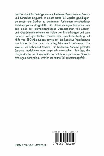 Der vorliegende Band enthält vorwiegend Beiträge, die auf der 26. Tagung der Gesellschaft fUr Angewandte Linguistik, die vom 28. bis 30. September 1995 in Kassel stattfand, vorgetragen worden sind. Aufgrund der intensiven und konstruktiven Diskussion wurden die Vorträge zum Teil gründlich überarbeitet. Außerdem sind einzelne Beiträge aufgenommen worden, die die drei thematischen Bereiche ergänzen. In allen Beiträgen wird das generische Maskulinum verwendet, wobei der Gebrauch dieses Genus keine geschlechtsspezifischen Aussagen beinhaltet. Der Herausgeber dankt Grainne Delany, Bielefeld, fUr das sorgfältige An fertigen der Druckvorlage. Sowohl die Autorinnen und Autoren als auch der Herausgeber würden sich freuen, wenn die Beiträge dieses Bandes die Diskussion in der Klinischen Linguistik stimulieren und intensivieren würden, so daß weitere Fortschritte erzielt werden können, von denen die betroffenen Patienten profitieren werden. Bielefeld, im März 1997 Gert Rickheit Ergebnisse und Perspektiven der Klinischen Linguistik Ger! Rickheit Im deutschsprachigen Raum hat sich die Neuro-bzw. Klinische Linguistik vor allem durch Untersuchungen sowohl zu bestimmten sprachlichen Leistungen bei aphasischen oder dysarthrischen Störungen als auch deren Diagnose und Therapie hervorgetan. Aufgrund dieser Studien liegen inzwischen differenzierte Syndrombeschreibungen dieser Krankheitsbilder vor. Bei den empirischen Untersuchungen handelt es sich zum einen um Fallstudien, die spezifische sprachliche Ausfälle, die im klinischen Alltag aufgefallen waren, detailliert beschreiben, und zum anderen um Gruppenuntersuchungen, die systematische Unterschiede zwischen Gesunden und einzelnen Krankheitsbildern feststellten.
