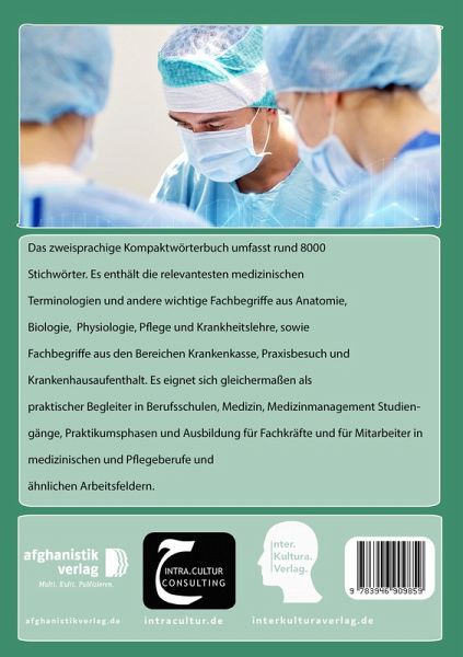 Das Persisch-Dari-Deutsche Studienwörterbuch für Medizin - Der perfekte Begleiter während deines Studiums!Das Wörterbuch beinhaltet...- rund 8.000 Vokabeln aus medizinischen Terminologien und andere wichtige Fachbegriffe aus Anatomie, Biologie, Physiologie, Pflege und Krankheitslehre sowie aus den Bereichen Krankenkasse, Praxisbesuch und KrankenhausaufenthaltDas Nachschlagewerk wurde speziell entwickelt für...- Studierende während des Studiums, in Grund-, Fort- und Weiterbildungskursen oder Berufsvorbereitungskursen- Berufsschüler- Fachkräfte und Mitarbeiter in medizinischen Betrieben, Pflegeberufen oder ähnlichen Arbeitsfeldern- Dozenten und Wissenschaftler- PraktikantenEs ist ist einsetzbar während...- der Studienzeit in Vorlesungen, Seminaren oder Tutorien- der Prüfungsvorbereitung- der Vorbereitung auf den Beruf- der Tätigkeit im Beruf- des Selbststudiums