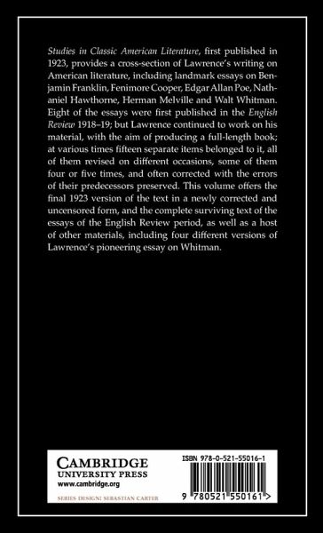 Landmark volume of Lawrence's writings on American literature including major essays on Poe, Hawthorne, Melville and Whitman.