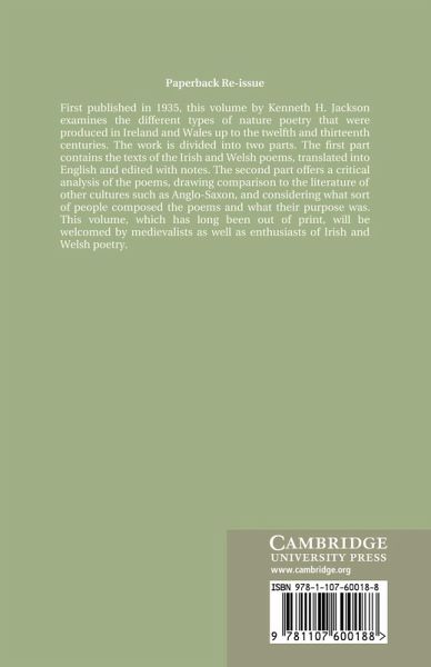 First published in 1935, this volume by Kenneth Jackson examines the different types of nature poetry that were produced in Ireland and Wales up to the twelfth and thirteenth centuries. The work is divided into two parts. The first part contains the texts of the Irish and Welsh poems, translated into English and edited with notes. The second part offers a critical analysis of the poems, drawing comparison to the literature of other cultures such as Anglo-Saxon, and considering what sort of people composed the poems and what their purpose was. This volume, which has long been out of print, will be welcomed by medievalists as well as enthusiasts of Irish and Welsh poetry.