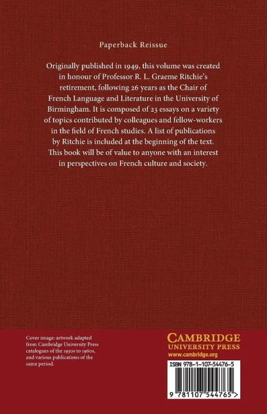 Originally published in 1949, this volume was created in honour of Professor R. L. Graeme Ritchie's retirement, following 26 years as the Chair of French Language and Literature in the University of Birmingham. It is composed of 23 essays on a variety of topics contributed by colleagues and fellow-workers in the field of French studies. A list of publications by Ritchie is included at the beginning of the text. This book will be of value to anyone with an interest in perspectives on French culture and society.