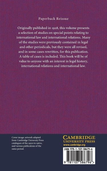 Originally published in 1928, this volume presents a selection of studies on special points relating to international law and international relations. Many of the studies were previously contained in legal and other periodicals, but they were all revised, and in some cases rewritten, for this publication. A table of cases is included. This book will be of value to anyone with an interest in legal history, international relations and international law.