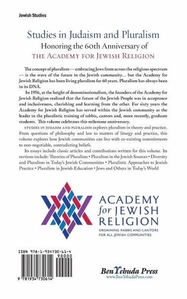 The concept of pluralism - embracing Jews from across the religious spectrum - is the wave of the future in the Jewish community… but the Academy for Jewish Religion has been living pluralism for 60 years. Pluralism has always been in its DNA. In 1956, at the height of denominationalism, the founders of the Academy for Jewish Religion realized that the future of the Jewish People was in acceptance and inclusiveness, cherishing and learning from the other. For sixty years the Academy for Jewish Religion has served within the Jewish community as the leader in the pluralistic training of rabbis, cantors and, more recently, graduate students. This volume celebrates this milestone anniversary. Studies in Judaism and Pluralism explores pluralism in theory and practice. From questions of philosophy and law to matters of liturgy and practice, this volume explores how Jewish communities can live with co-existing commitments to non-negotiable, contradicting beliefs. Its essays include classic articles and contributions written for this volume. Its sections include: Theories of Pluralism • Pluralism in the Jewish Sources • Diversity and Pluralism in Today's Jewish Communities • Pluralistic Approaches to Jewish Practice • Pluralism in Jewish Education • Jews and Others in Today's World