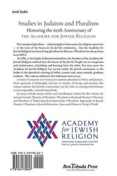 The concept of pluralism - embracing Jews from across the religious spectrum - is the wave of the future in the Jewish community… but the Academy for Jewish Religion has been living pluralism for 60 years. Pluralism has always been in its DNA. In 1956, at the height of denominationalism, the founders of the Academy for Jewish Religion realized that the future of the Jewish People was in acceptance and inclusiveness, cherishing and learning from the other. For sixty years the Academy for Jewish Religion has served within the Jewish community as the leader in the pluralistic training of rabbis, cantors and, more recently, graduate students. This volume celebrates this milestone anniversary. Studies in Judaism and Pluralism explores pluralism in theory and practice. From questions of philosophy and law to matters of liturgy and practice, this volume explores how Jewish communities can live with co-existing commitments to non-negotiable, contradicting beliefs. Its essays include classic articles and contributions written for this volume. Its sections include: Theories of Pluralism • Pluralism in the Jewish Sources • Diversity and Pluralism in Today's Jewish Communities • Pluralistic Approaches to Jewish Practice • Pluralism in Jewish Education • Jews and Others in Today's World