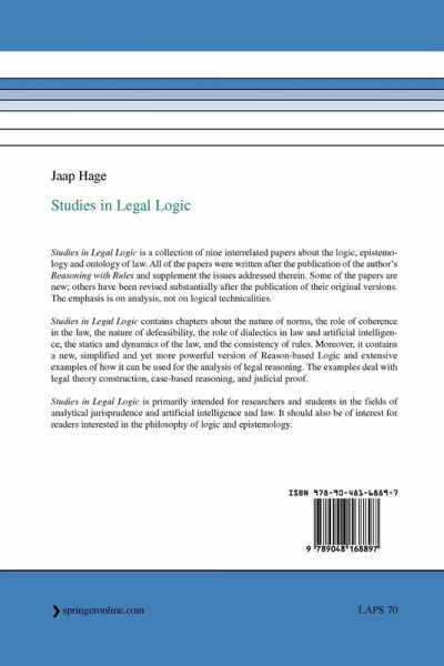 Studies in Legal Logic contains chapters about the nature of norms, the role of coherence in the law, the nature of defeasibility, the role of dialectics in law and artificial intelligence, the statics and dynamics of the law, and the consistency of rules. Moreover, it contains a new, simplified and yet more powerful version of Reason-based Logic and extensive examples of how it can be used for the analysis of legal reasoning. The examples deal with legal theory construction, case-based reasoning, and judicial proof.