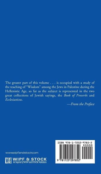 The greater part of this volume ... is occupied with a study of the teaching of ""Wisdom"" among the Jews in Palestine during the Hellenistic Age, so far as the subject is represented in the two great collections of Jewish sayings, the Book of Proverbs and Ecclesiasticus. -From the Preface