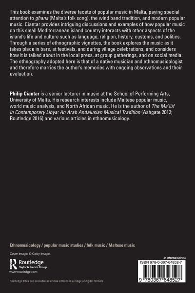 This book examines the diverse facets of popular music in Malta, paying special attention to g¿ana (Malta's folk song), the wind band tradition, and modern popular music. Ciantar provides intriguing discussions and examples of how popular music on this small Mediterranean island country interacts with other aspects of the island's life and culture such as language, religion, history, customs, and politics. Through a series of ethnographic vignettes, the book explores the music as it takes place in bars, at festivals, and during village celebrations, and considers how it is talked about in the local press, at group gatherings, and on social media.¿The ethnography adopted here is that of a native musician and ethnomusicologist and therefore marries the author's memories with ongoing observations and their evaluation.