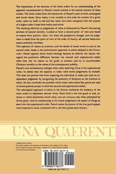 The aim of these studies is to show how Pascal's moral outlook reflects the influence on his thought of the basic doctrine of the three orders. This does not mean that an attempt is made to classify all Pascal's moral judgements in order to relate them to that doctrine. The intention is rather to dIstinguish the different moral stances Pascal takes, and to ascertain how far the apparent inconsistencies between them can be explained, if not reconciled, in the light of the orders. It is made clear at the outset how the three orders form the framework of Pascal's scale of values, with the different orders representing at once categories of moral value and orders of being. The peculiar nature of this scale, in which moral and ontological values coalesce, calls for a double criterion, or variable, to allow for differences both of degree and of kind. Since the criterion of rank in the scale is reality, the assigning of value becomes largely a question of perspective: a quality from a given order taken by itself is real, and has moral value, but when compared with a quality from a higher order it loses both its reality and its worth.