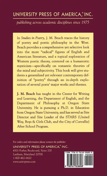 In Studies in Poetry, J.M. Beach traces the history of poetry and poetic philosophy in the West. This book will give students a generalized, yet relevantly contemporary definition of "poetry," through an in-depth exploration of several poet's major works and themes.