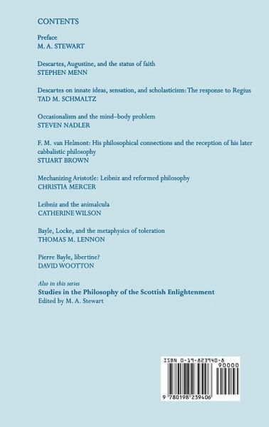 This is a collection of new, specially written essays on the flowering of modern philosophy on the continent of Europe. The eight leading contributors focus on the work of Descartes, later Cartesians, Leibniz, and Bayle, reassessing the influence of Augustine on Descartes and of the Reformed tradition on Leibniz, and tracing anticipations of Leibniz's monadology in the cabbalistic notions of van Helmont, the preformationist theories of Malebranche, and the experimental work of Dutch microscopists.