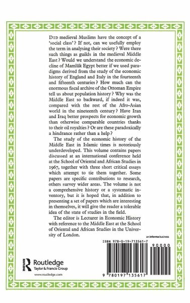 First Published in 2004. Did medieval Muslims have the concept of a 'social class'? If not, can we usefully employ the term in analysing their society? Were there such things as guilds in the medieval Middle East? Would we understand the economic de- cline of Mamluk Egypt better if we used paradigms derived from the study of the economic history of England and Italy in the fourteenth and fifteenth centuries? How much can the enormous fiscal archive of the Ottoman Empire tell us about population history? Why was the Middle East so backward, if indeed it was, compared with the rest of the Afro-Asian world in the nineteenth century? Have Iran and Iraq better prospects for economic growth than otherwise comparable countries thanks to their oil royalties? Or are these paradoxically a hindrance rather than a help? The study of the economic history of the Middle East in Islamic times is notoriously underdeveloped. This volume contains papers discussed at an international conference held at the School of Oriental and African Studies in 1967, together with three short critical essays which attempt to tie them together. Some papers are specific contributions to research, others survey wider areas. The volume is not a comprehensive history or a systematic inventory, but it is hoped that, in addition to presenting a set of papers which are interesting in themselves, it will give the reader a tolerable idea of the state of studies in the field.