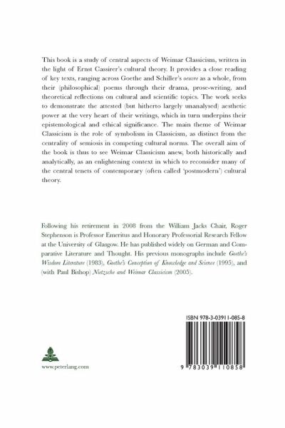 This book is a study of central aspects of Weimar Classicism, written in the light of Ernst Cassirer's cultural theory. It provides a close reading of key texts, ranging across Goethe and Schiller's oeuvre as a whole, from their (philosophical) poems through their drama, prose-writing, and theoretical reflections on cultural and scientific topics. The work seeks to demonstrate the attested (but hitherto largely unanalysed) aesthetic power at the very heart of their writings, which in turn underpins their epistemological and ethical significance. The main theme of Weimar Classicism is the role of symbolism in Classicism, as distinct from the centrality of semiosis in competing cultural norms. The overall aim of the book is thus to see Weimar Classicism anew, both historically and analytically, as an enlightening context in which to reconsider many of the central tenets of contemporary (often called 'postmodern') cultural theory.
