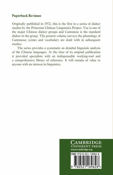 Originally published in 1972, this is the first in a series of dialect studies by the Princeton Chinese Linguistics Project. Yue is one of the major Chinese dialect groups and Cantonese is the standard dialect in the group. The present volume surveys the phonology of Cantonese; syntax and vocabulary are dealt with in subsequent studies. The series provides a systematic an detailed linguistic analysis of the Chinese languages. At the time of its original publication it provided specialists with an indispensable working-tool and a comprehensive library of reference. It will remain of value to anyone with an interest in linguistics.