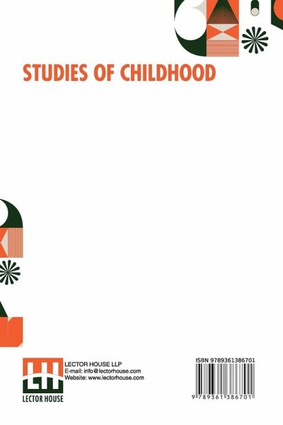 NEW PRINT WITH PROFESSIONAL TYPE-SET IN CONTRAST TO SCANNED PRINTS OFFERED BY OTHERS Studies Of Childhood This book is a result of an effort made by us towards making a contribution to the preservation and repair of original classic literature. In an attempt to preserve, improve and recreate the original content, we have worked towards: 1. Type-setting & Reformatting: The complete work has been re-designed via professional layout, formatting and type-setting tools to re-create the same edition with rich typography, graphics, high quality images, and table elements, giving our readers the feel of holding a fresh and newly reprinted and/or revised edition, as opposed to other scanned & printed (Optical Character Recognition - OCR) reproductions. 2. Correction of imperfections: As the work was re-created from the scratch, therefore, it was vetted to rectify certain conventional norms with regard to typographical mistakes, hyphenations, punctuations, blurred images, missing content/pages, and/or other related subject matters, upon our consideration. Every attempt was made to rectify the imperfections related to omitted constructs in the original edition via other references. However, a few of such imperfections which could not be rectified due to intentional\unintentional omission of content in the original edition, were inherited and preserved from the original work to maintain the authenticity and construct, relevant to the work.