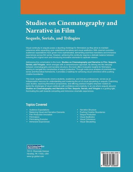 Visual continuity in sequels poses a daunting challenge for filmmakers as they strive to maintain coherence while expanding upon established narratives and visual aesthetics. With cinema's evolution, audiences' expectations have grown more sophisticated, demanding seamless transitions and immersive experiences across film series. However, achieving this continuity requires a delicate balance between honoring the original work and introducing innovative elements to captivate viewers. Addressing this complication is the book, Studies on Cinematography and Narrative in Film: Sequels, Serials, and Trilogies , which emerges with a comprehensive approach. By delving into the interplay between cinematography and narrative structure, this book offers invaluable insights for filmmakers seeking to navigate the complexities of sequel production. Through meticulous analysis of prominent film series and theoretical frameworks, it provides a roadmap for achieving visual coherence while pushing creative boundaries.