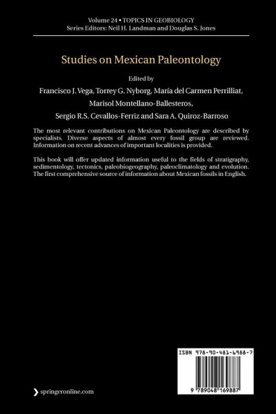 During the last few years, the number of contributions to the Paleontology of Mexico has increased considerably. Paleontological work in Mexico has been focused on providing important information for petroleum exploration and specific studies dealing with pollen, foraminifera, radiolaria, dinoflagellates, rudists, and ammonites. Often these reports were published only in local or regional journals and therefore not available to the scientific community at large. The purpose of this book is to offer an updated review of the fossil groups from Mexico, providing their significance to the stratigraphy, tectonics, sedimentology, evolution and paleontology of Mexico whose study has proved to be relevant in stratigraphy, tectonics, sedimentology, and evolution. The fossil record of Mexico ranges from Precambrian to Pleistocene. Almost every Mexican State has reported fossil localities with ongoing studies and potential for the discovery of new localities. Even those localities that havebeen studied since the eighteen-century, such as the early Cretaceous San Juan Raya, have recently reported new fossil groups. Unfortunately, much of the fossil reports from Mexico have been published in Spanish from local journals, which represent a language barrier to the international community. There is little doubt that the paleontological history of Mexico deserves to be known in other countries. By making this book available to the international scientific community we hope that interest in the fossil record of Mexico will grow.