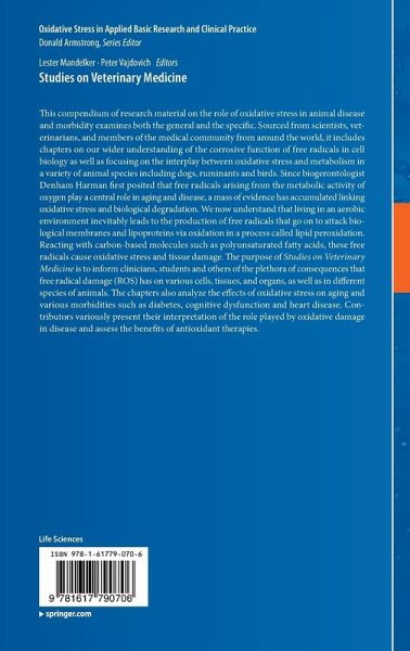 The purpose of Studies on Veterinary Medicine is to inform clinicians, students and others of the plethora of consequences that free radical damage (ROS) has on various cells, tissues, and organs, as well as in different species of animals. The chapters also analyze the effects of oxidative stress on aging and various morbidities such as diabetes, cognitive dysfunction and heart disease. Contributors variously present their interpretation of the role played by oxidative damage in disease and assess the benefits of antioxidant therapies.