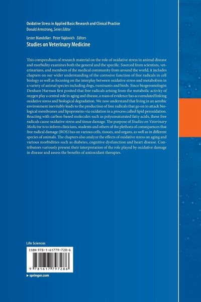 The purpose of Studies on Veterinary Medicine is to inform clinicians, students and others of the plethora of consequences that free radical damage (ROS) has on various cells, tissues, and organs, as well as in different species of animals. The chapters also analyze the effects of oxidative stress on aging and various morbidities such as diabetes, cognitive dysfunction and heart disease. Contributors variously present their interpretation of the role played by oxidative damage in disease and assess the benefits of antioxidant therapies.