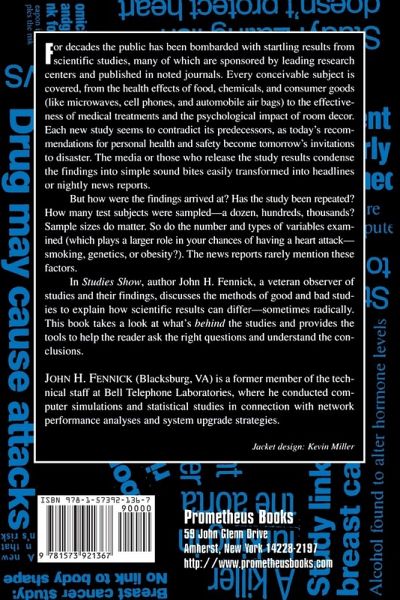 If you're not sure what to make of all the claims and counterclaims, this new book will help cut through the conflicting reports and contradictory findings. We are bombarded daily with media reports of startling new findings from "just released" studies often in major, authoritative publications on consumer products, medications, foods, alcohol, safety devices, social behavior, public policy, and much more. The decisions of millions of consumers, professionals, and government agencies can be influenced by just one study. Light, humorous, and entertaining, Studies Show reviews sample studies to expose their traps and pitfalls. In plain English, statistics analyst John H. Fennick discusses the methods of good and bad studies to explain how scientific results can differ sometimes radically. Fennick shows that when armed with common sense and critical intelligence, we can understand almost any study.
