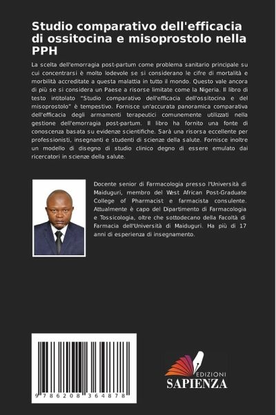 La scelta dell'emorragia post-partum come problema sanitario principale su cui concentrarsi è molto lodevole se si considerano le cifre di mortalità e morbilità accreditate a questa malattia in tutto il mondo. Questo vale ancora di più se si considera un Paese a risorse limitate come la Nigeria. Il libro di testo intitolato "Studio comparativo dell'efficacia dell'ossitocina e del misoprostolo" è tempestivo. Fornisce un'accurata panoramica comparativa dell'efficacia degli armamenti terapeutici comunemente utilizzati nella gestione dell'emorragia post-partum. Il libro ha fornito una fonte di conoscenza basata su evidenze scientifiche. Sarà una risorsa eccellente per professionisti, insegnanti e studenti di scienze della salute. Fornisce inoltre un modello di disegno di studio clinico degno di essere emulato dai ricercatori in scienze della salute.