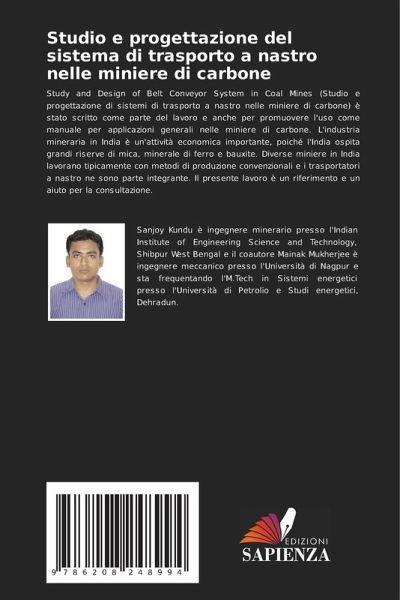Study and Design of Belt Conveyor System in Coal Mines (Studio e progettazione di sistemi di trasporto a nastro nelle miniere di carbone) è stato scritto come parte del lavoro e anche per promuovere l'uso come manuale per applicazioni generali nelle miniere di carbone. L'industria mineraria in India è un'attività economica importante, poiché l'India ospita grandi riserve di mica, minerale di ferro e bauxite. Diverse miniere in India lavorano tipicamente con metodi di produzione convenzionali e i trasportatori a nastro ne sono parte integrante. Il presente lavoro è un riferimento e un aiuto per la consultazione.
