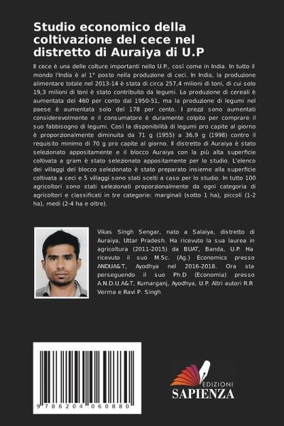 Il cece è una delle colture importanti nello U.P., così come in India. In tutto il mondo l'India è al 1° posto nella produzione di ceci. In India, la produzione alimentare totale nel 2013-14 è stata di circa 257,4 milioni di toni, di cui solo 19,3 milioni di toni è stato contribuito da legumi. La produzione di cereali è aumentata del 460 per cento dal 1950-51, ma la produzione di legumi nel paese è aumentata solo del 178 per cento. I prezzi sono aumentati considerevolmente e il consumatore è duramente colpito per comprare il suo fabbisogno di legumi. Così la disponibilità di legumi pro capite al giorno è proporzionalmente diminuita da 71 g (1955) a 36,9 g (1998) contro il requisito minimo di 70 g pro capite al giorno. Il distretto di Auraiya è stato selezionato appositamente e il blocco Auraiya con la più alta superficie coltivata a gram è stato selezionato appositamente per lo studio. L'elenco dei villaggi del blocco selezionato è stato preparato insieme alla superficie coltivata a ceci e 5 villaggi sono stati scelti a caso per lo studio. In tutto 100 agricoltori sono stati selezionati proporzionalmente da ogni categoria di agricoltori e classificati in tre categorie: marginali (sotto 1 ha), piccoli (1-2 ha), medi (2-4 ha e oltre).