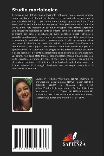 Il meccanismo del drenaggio lacrimale nel cane non è completamente compreso. Lo studio ha valutato la via escretrice lacrimale del cane da un punto di vista istologico, per comprendere meglio questa struttura. Sono stati coinvolti 30 cani adulti normali (60 occhi) di peso compreso tra 4,15 e 30 kg. Sono stati eseguiti un esame ectoscopico, una dacriocistografia e una valutazione istologica del dotto escretore lacrimale. Il condotto lacrimale escretore del cane è costituito da punti, canalicoli, sacco lacrimale e condotto nasolacrimale, che si apre nel meato inferiore della narice, come osservato alla dacriocistografia. Istologicamente, il dotto lacrimale escretore del cane è rivestito in parte da epitelio squamoso stratificato non cheratinizzato, che poggia su uno stroma connettivale denso, e in parte da epitelio colonnare stratificato, che poggia su uno stroma connettivale lasso. Il sacco lacrimale e il dotto nasolacrimale sono circondati da una ricca rete vascolare. Non sono state trovate fibre muscolari intorno o giustapposte al dotto escretore lacrimale del cane. Il cane non ha strutture contrattili che circondano strettamente il dotto escretore lacrimale, quindi si presume che il meccanismo di drenaggio lacrimale non coinvolga meccanismi di contrazione muscolare.